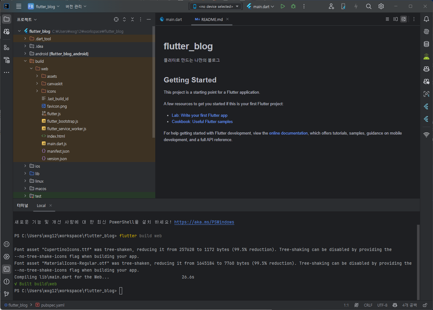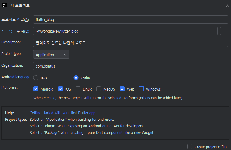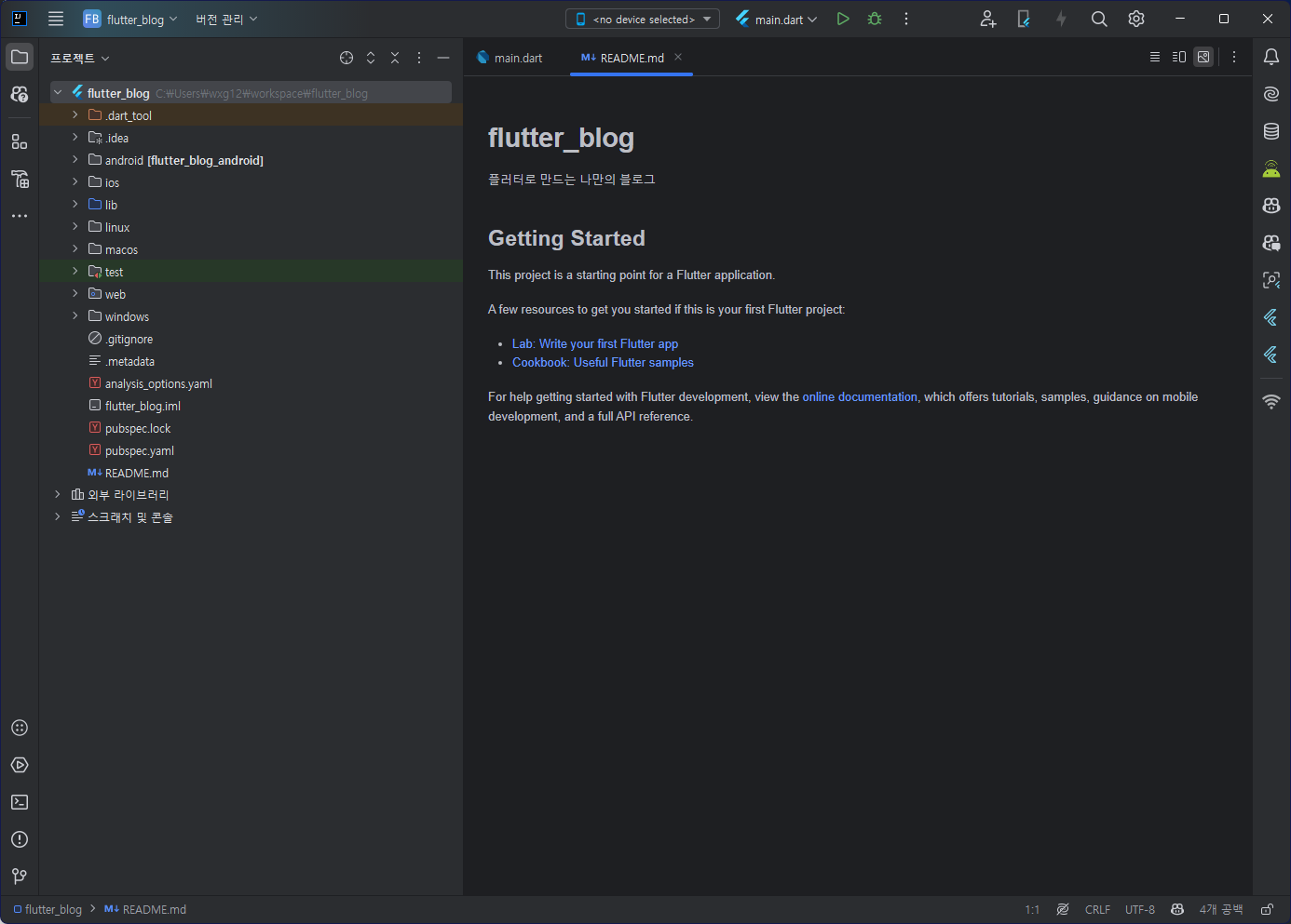 이제 레포가 모두 만들어졌다면 블로그용으로 만들 새로운 Flutter 프로젝트를 만들어봅시다.
