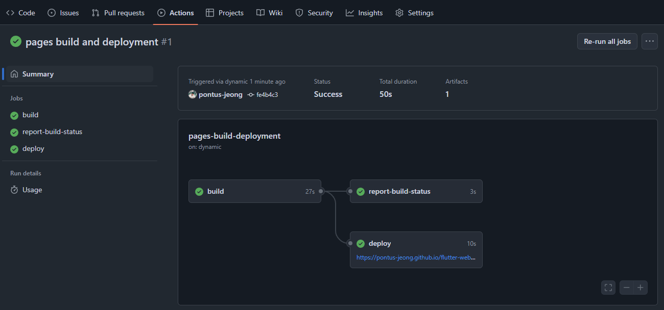 그리고 이러한 빌드를 일일이 command 입력 없이 Github Actions를 통해 웹 빌드를 자동으로 해주고, Github Pages에 자동 Deploy까지 될 수 있게 하면 매우 편안해질 겁니다.