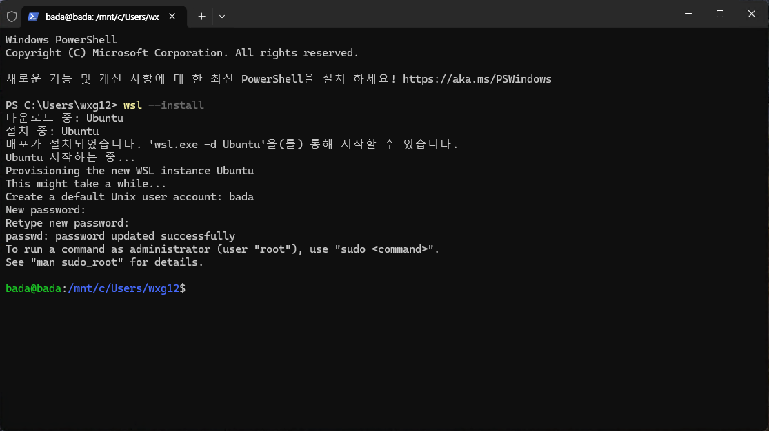 - 설치: Windows PowerShell이나 명령 프롬프트를 관리자 권한으로 열고, 다음 명령어를 입력하면 WSL과 최신 Ubuntu 배포판이 WSL2 버전으로 설치됩니다.